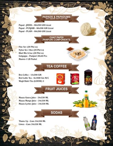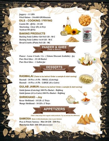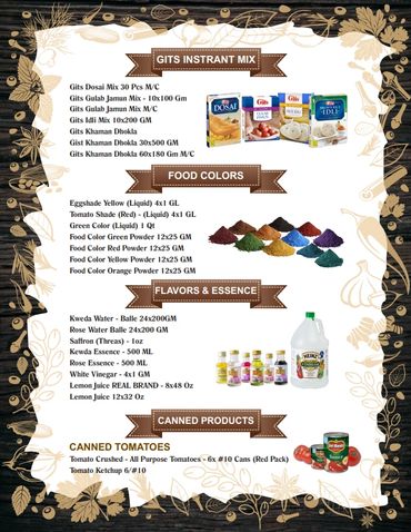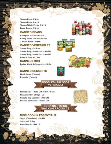 Canned Products: Canned Tomatoes, Canned Beans -Noodles- Falooda, Vermicilly -Cooking, Frying, Backing Product -Paneer, Ghee -Desserts -Appetizers